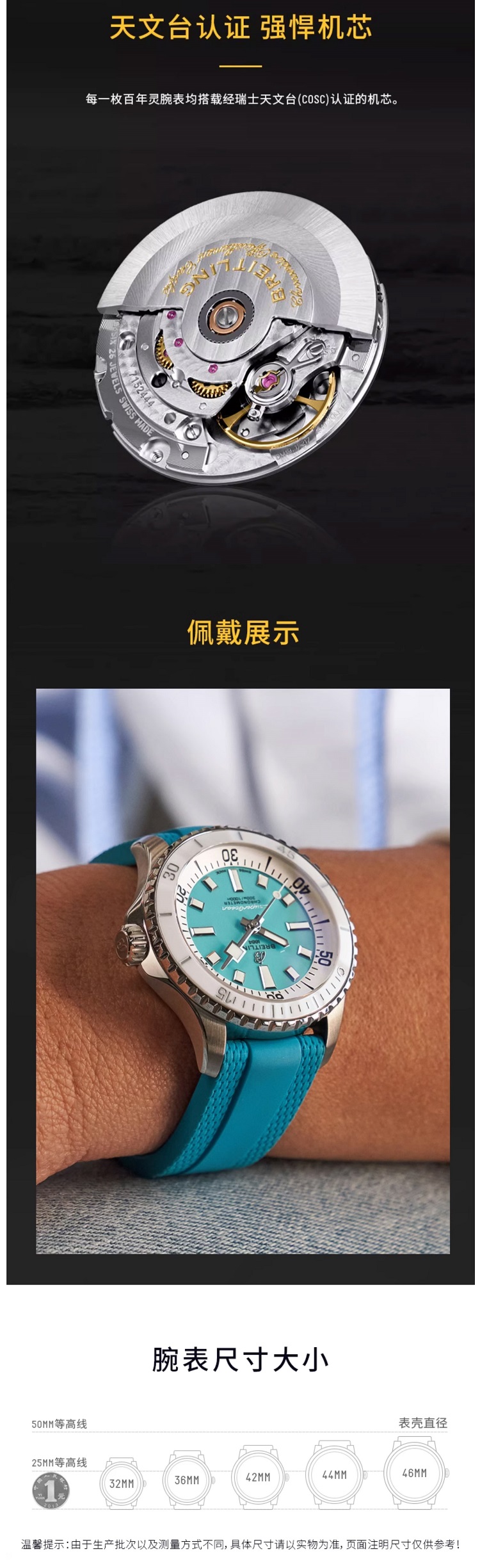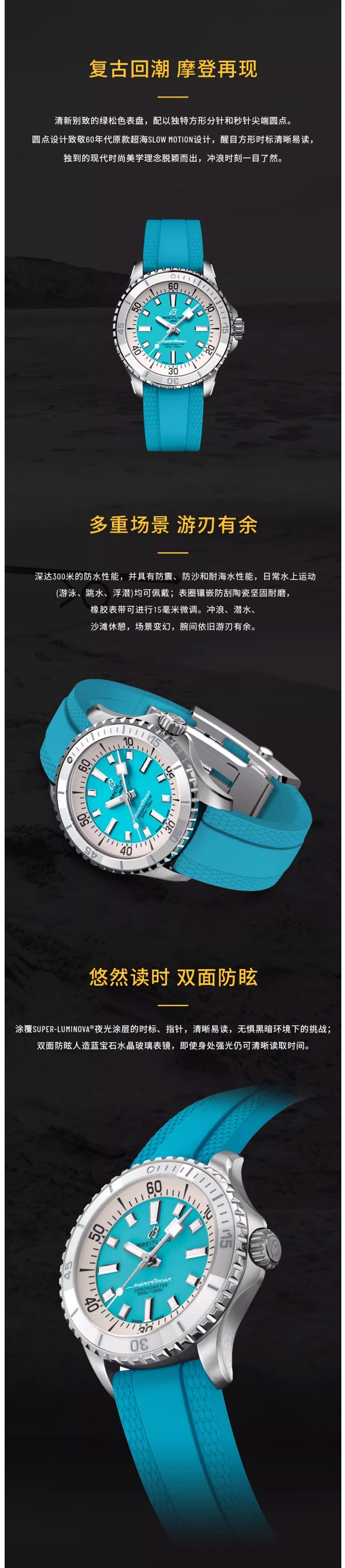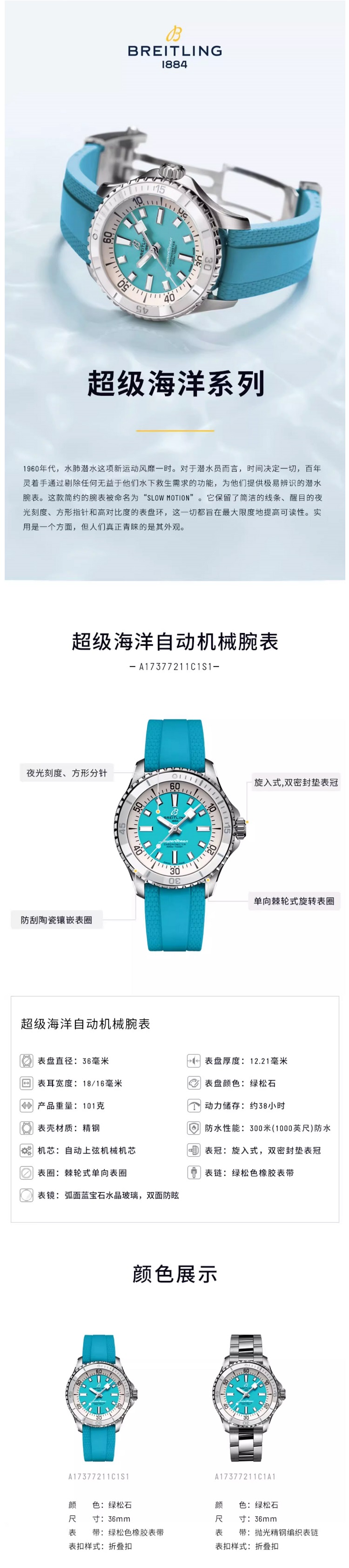 百年灵(BREITLING)超级海洋系列机械36女表 A17377211C1S1(单位:块) 水蓝色