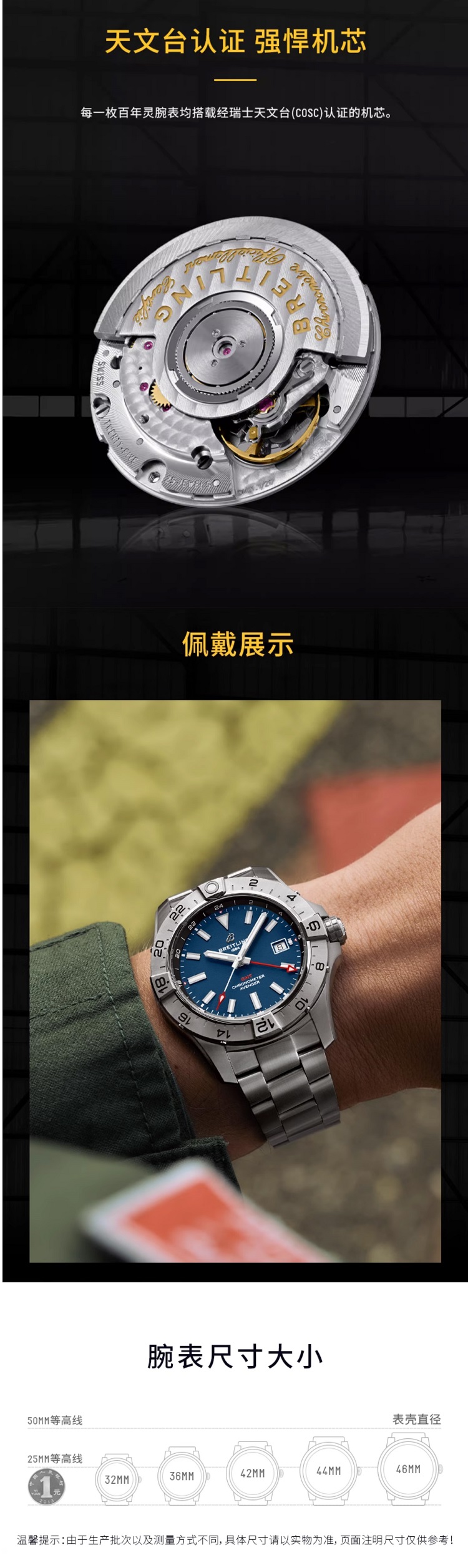 百年灵(BREITLING)复仇者双时区系列机械44男表 A32320101C1A1(单位:块) 蓝色