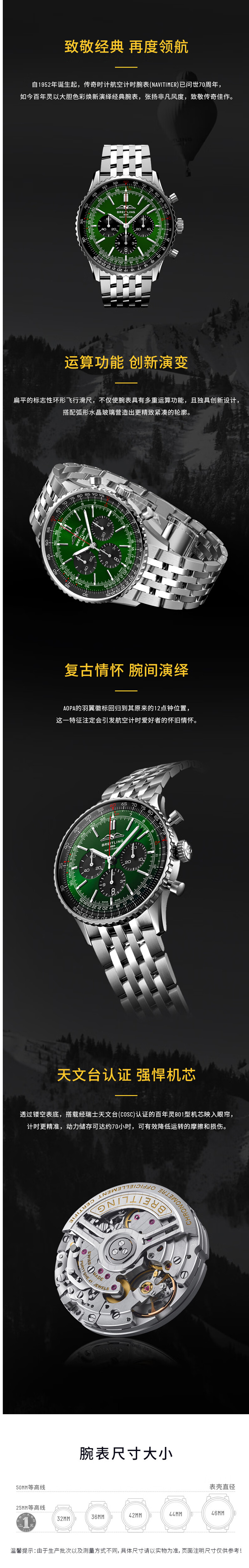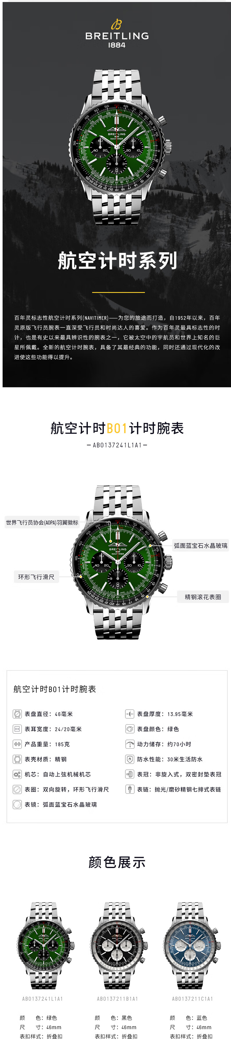 百年灵(BREITLING)航空计时系列46机械男表 AB0137241L1A1(单位:块) 绿色