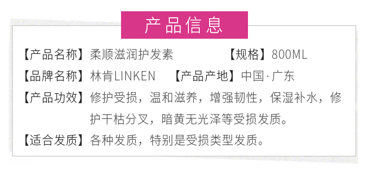 林肯 柔顺滋润护发素 800ml (单位:瓶) 自然色