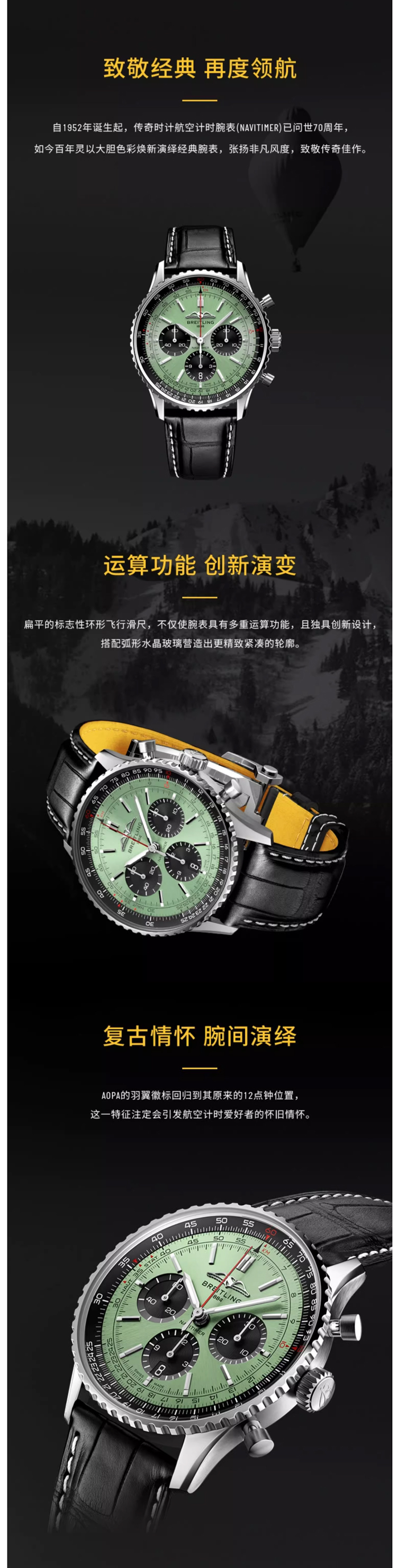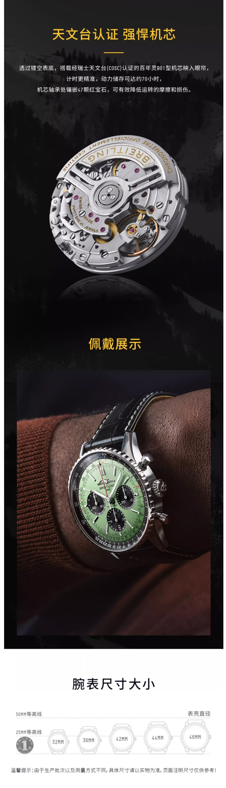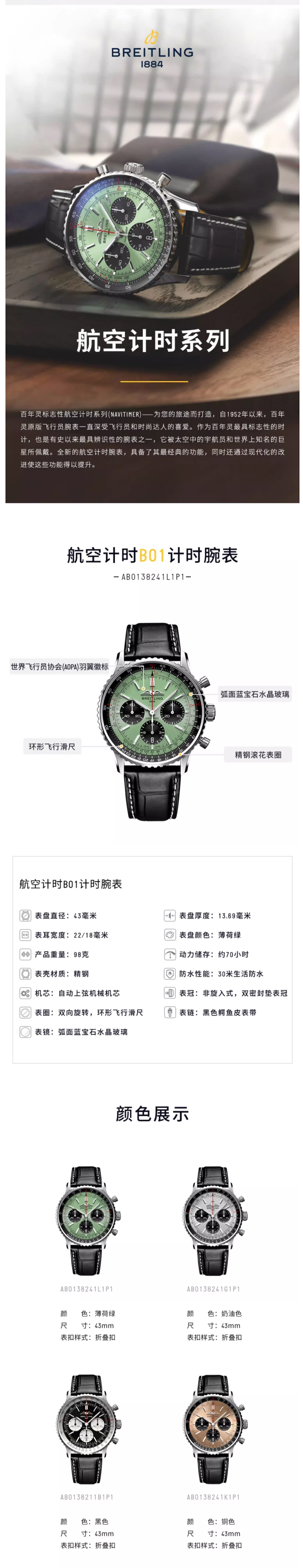 百年灵(BREITLING)航空计时系列43机械男表【黄景瑜同款】AB0138241L1P1 块 绿色