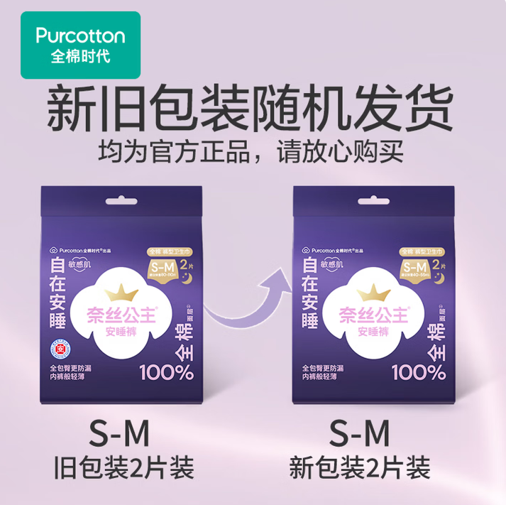 全棉时代 安睡裤 奈丝公主 SM码2片/袋*6 紫色(单位:组)