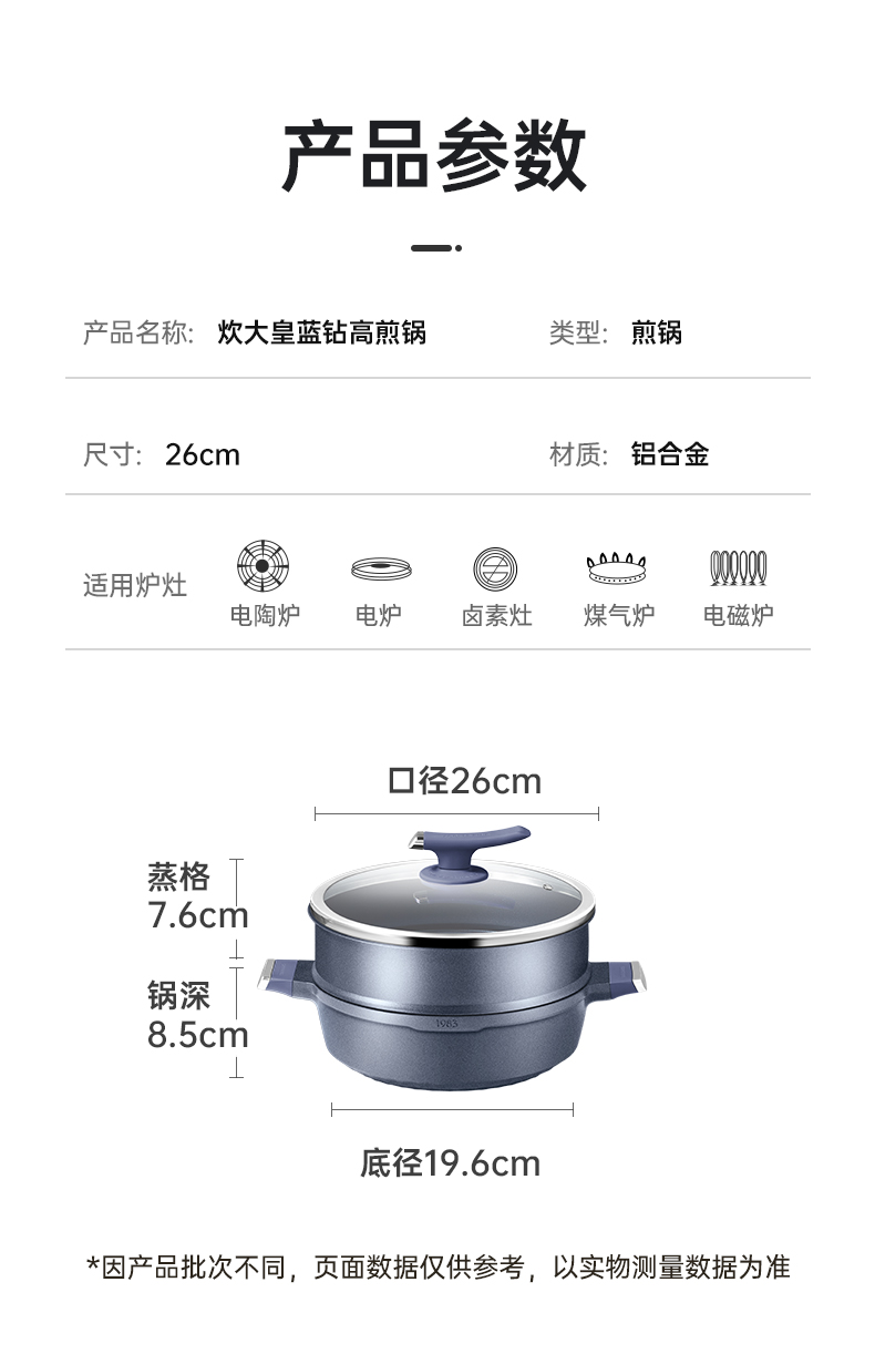 炊大皇蓝钻煎锅CKNS6526ZS 单位:个 蓝色