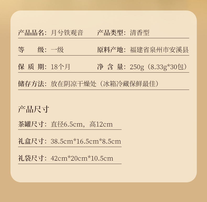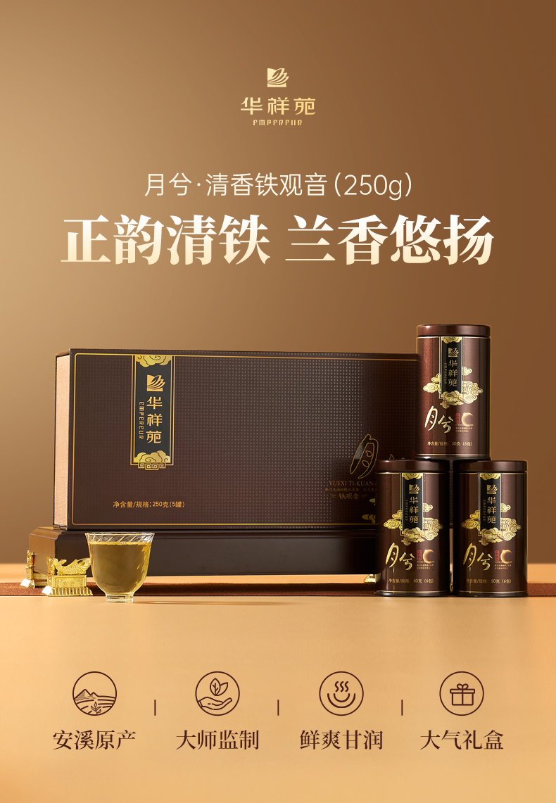 华祥苑安溪清香型铁观音月兮茶叶礼盒250g单位:盒