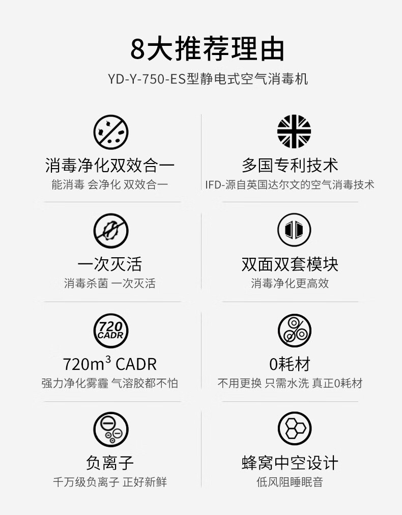 亚都 IFD静电式空气消毒机负离子净化器除细菌消毒PM2.5雾霾YD-Y-750-ES 单位:台 白色