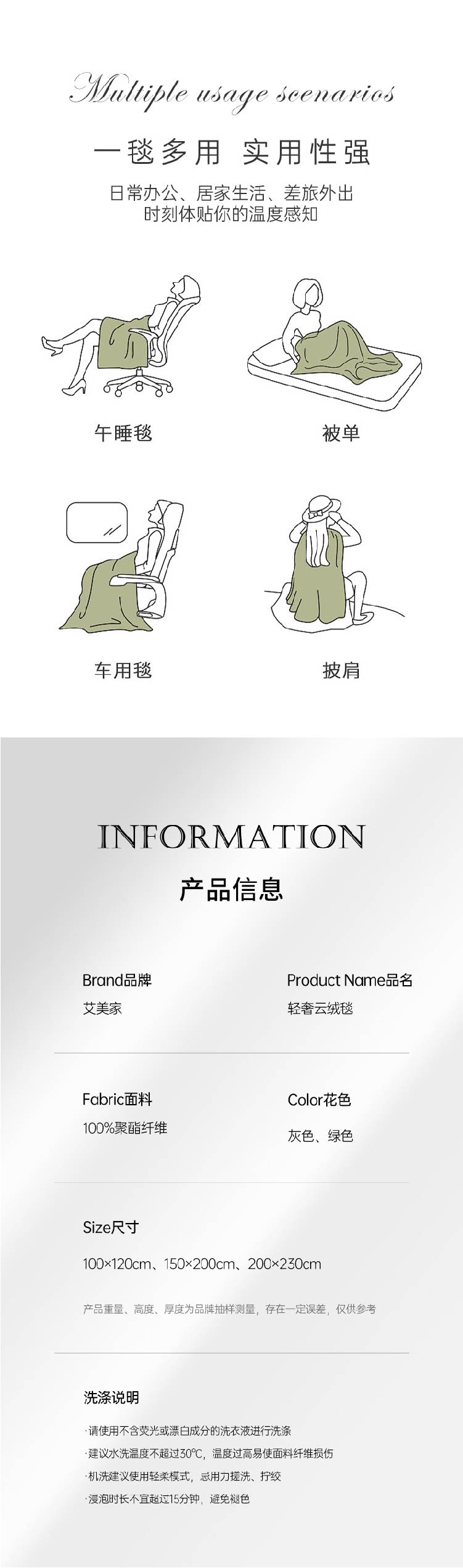 艾美家 轻奢云绒毯 100*120cm (单位:条) 灰色