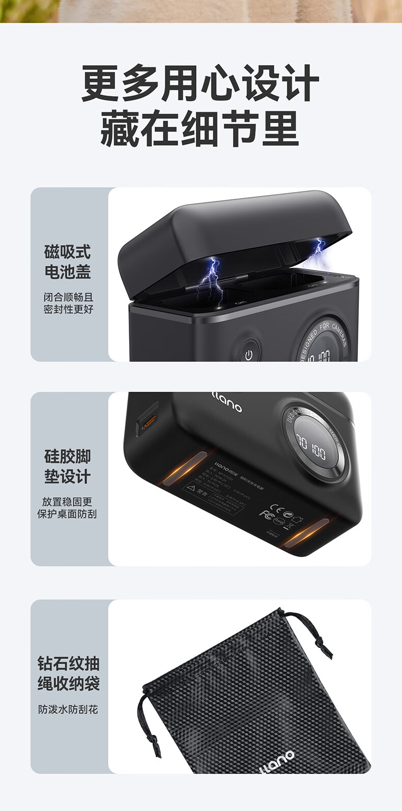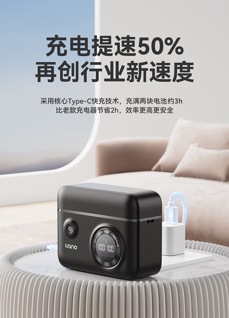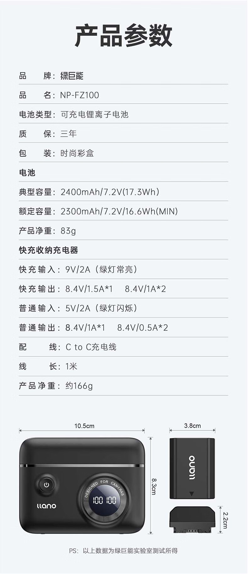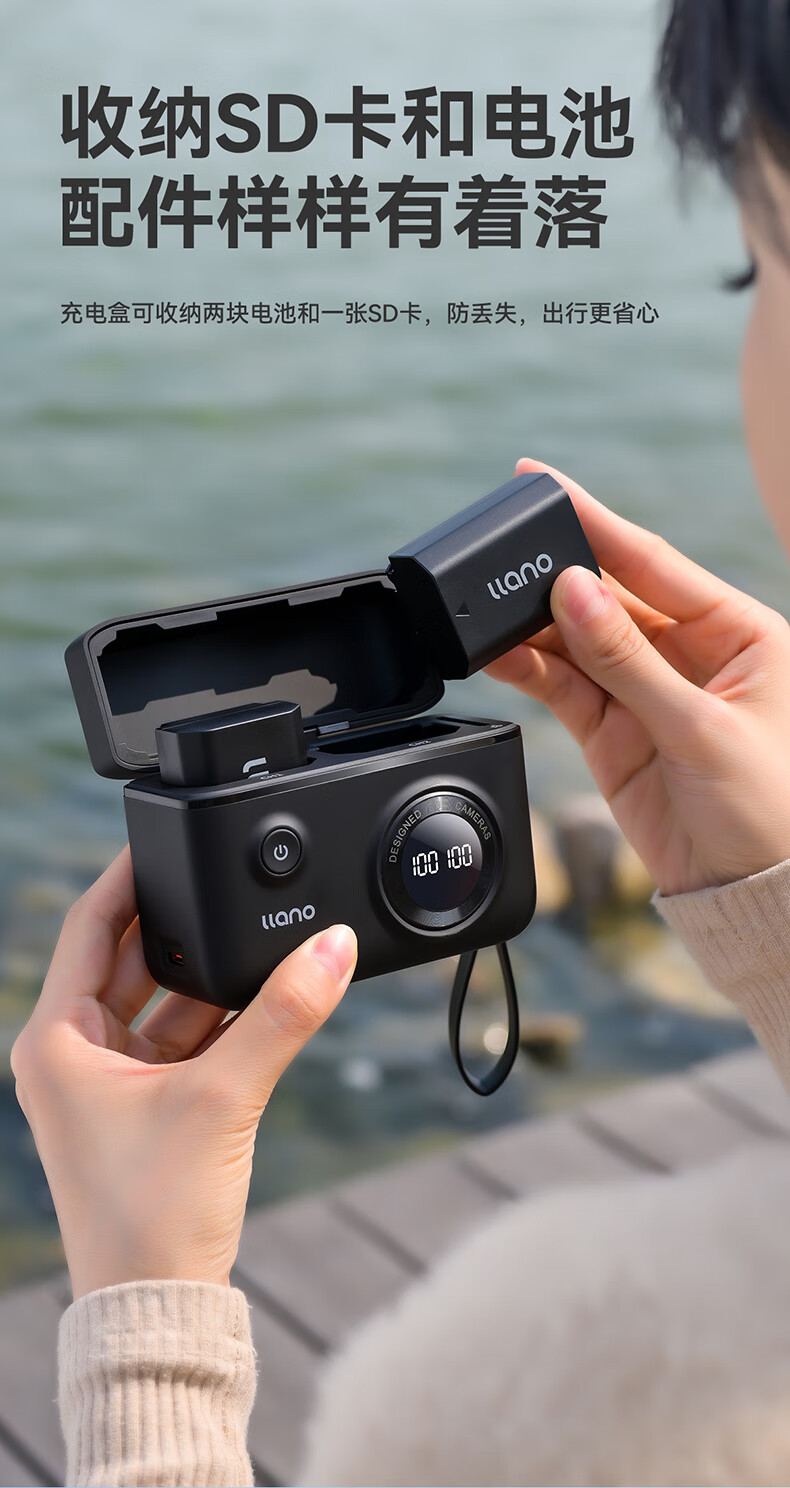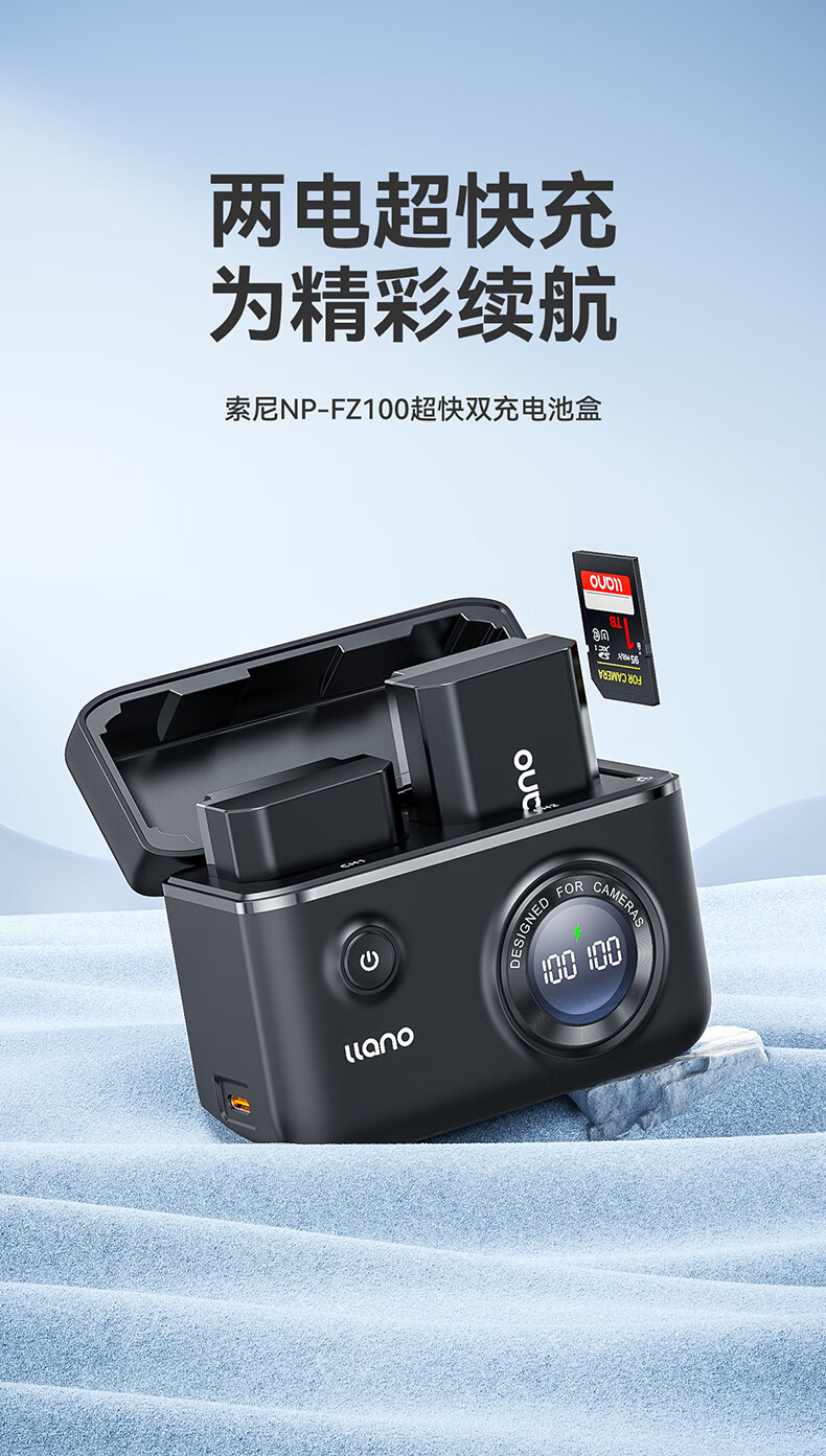 绿巨能索尼NP-FZ100相机快充盒a7m4电池a7m3/a7r4/微单相机快充充电盒可收纳双充盒个 曜石黑