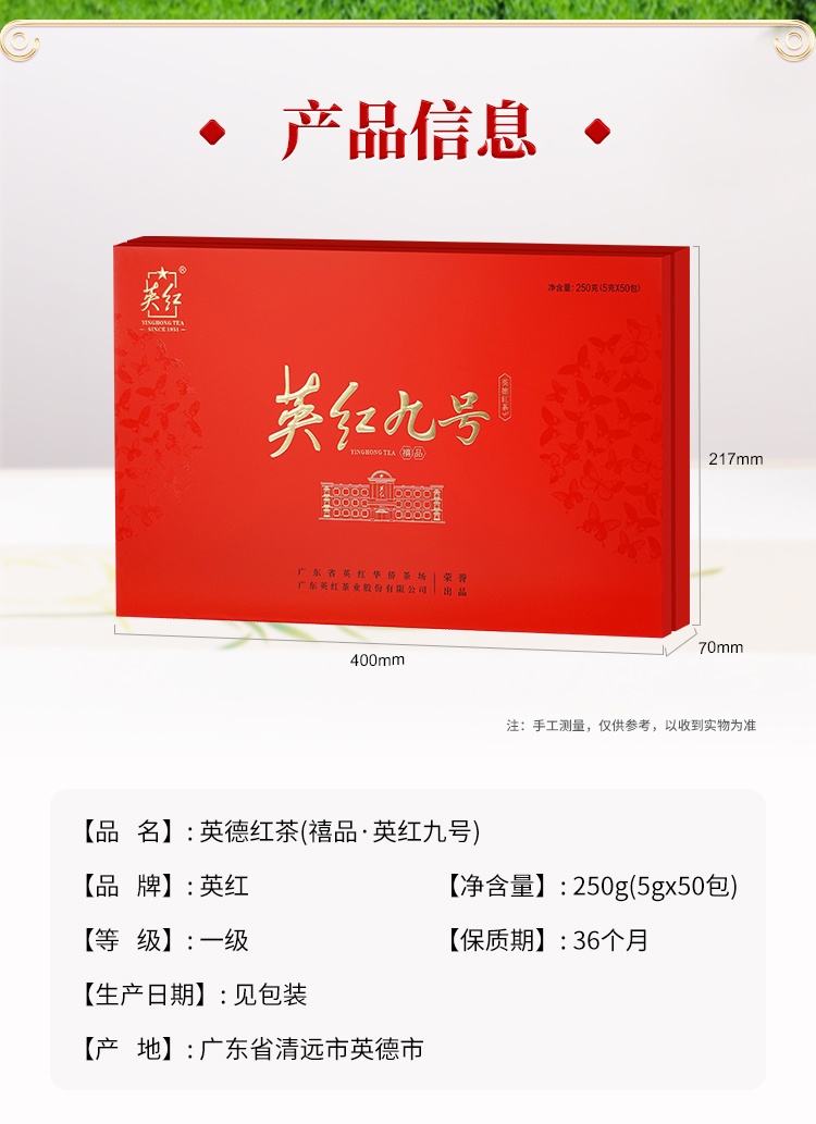 英红·禧品(蝴蝶)九号礼盒 一级英德红茶 250克 /盒(5克*50泡/盒)(单位:盒) 红色