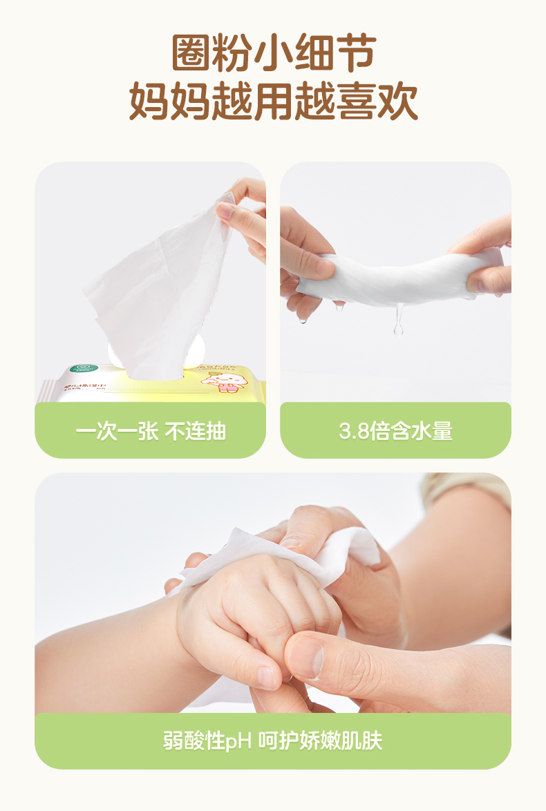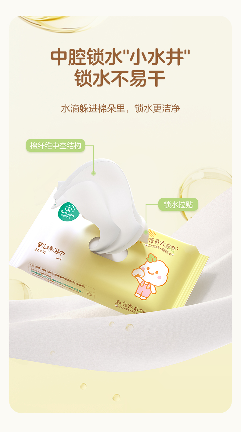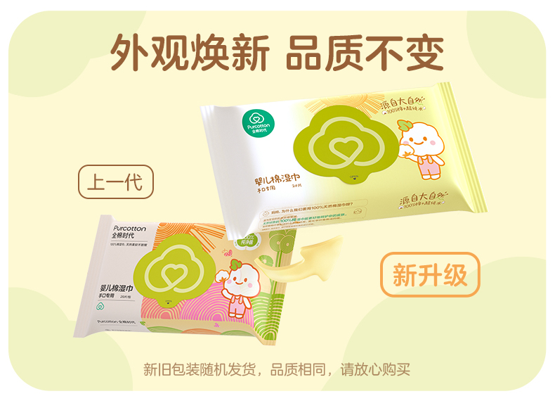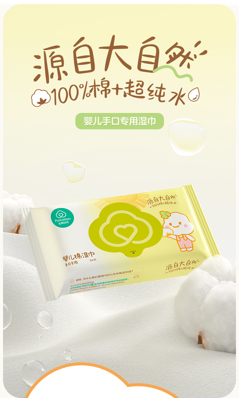 全棉时代 湿巾 100%纯棉出行便携全家可用 20片*5包 黄色(单位:袋)