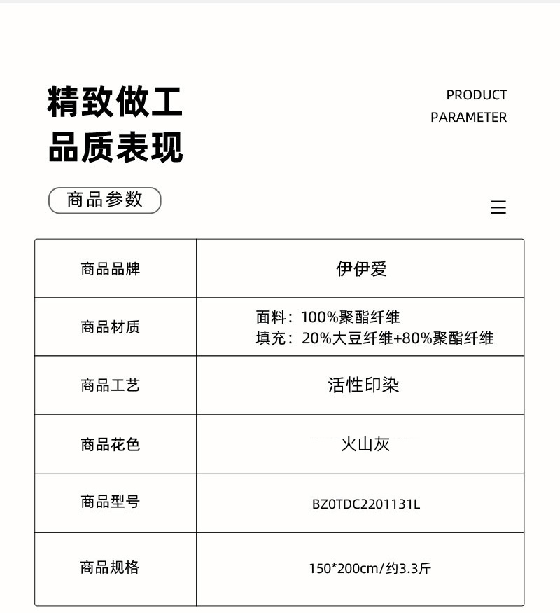 伊伊爱BZ0TDC2201131L糯绵磨毛大提花大豆秋冬被150*200cm约3.3斤(单位:床) 象牙色