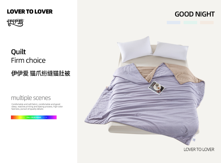 伊伊爱BZ0SXM2401234猫爪绗缝猫肚被—香草芋芋150*200cm(单位:条) 深蓝色