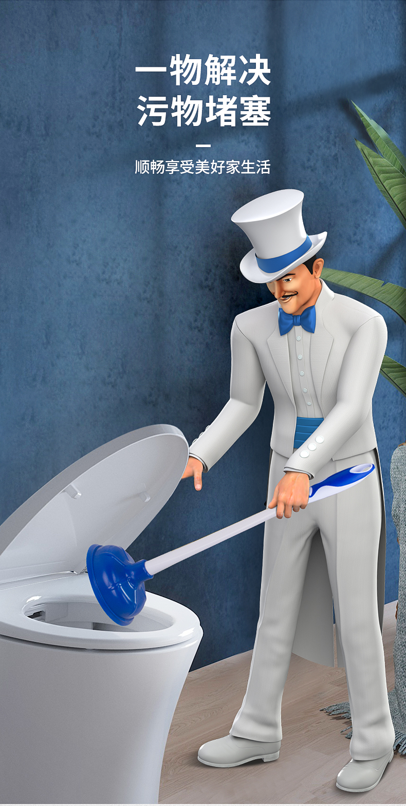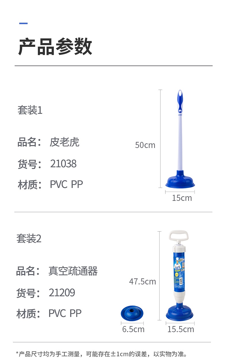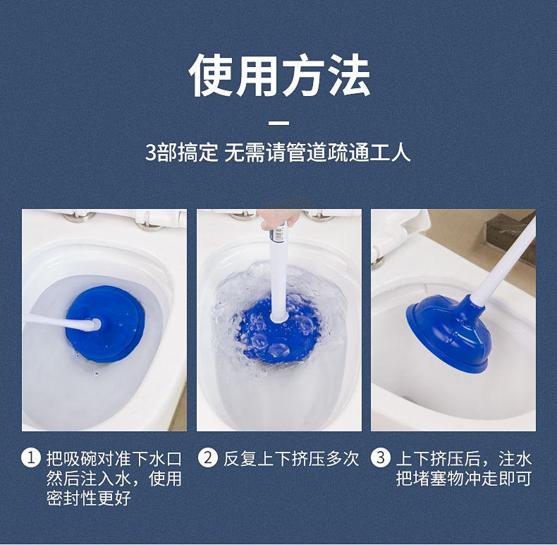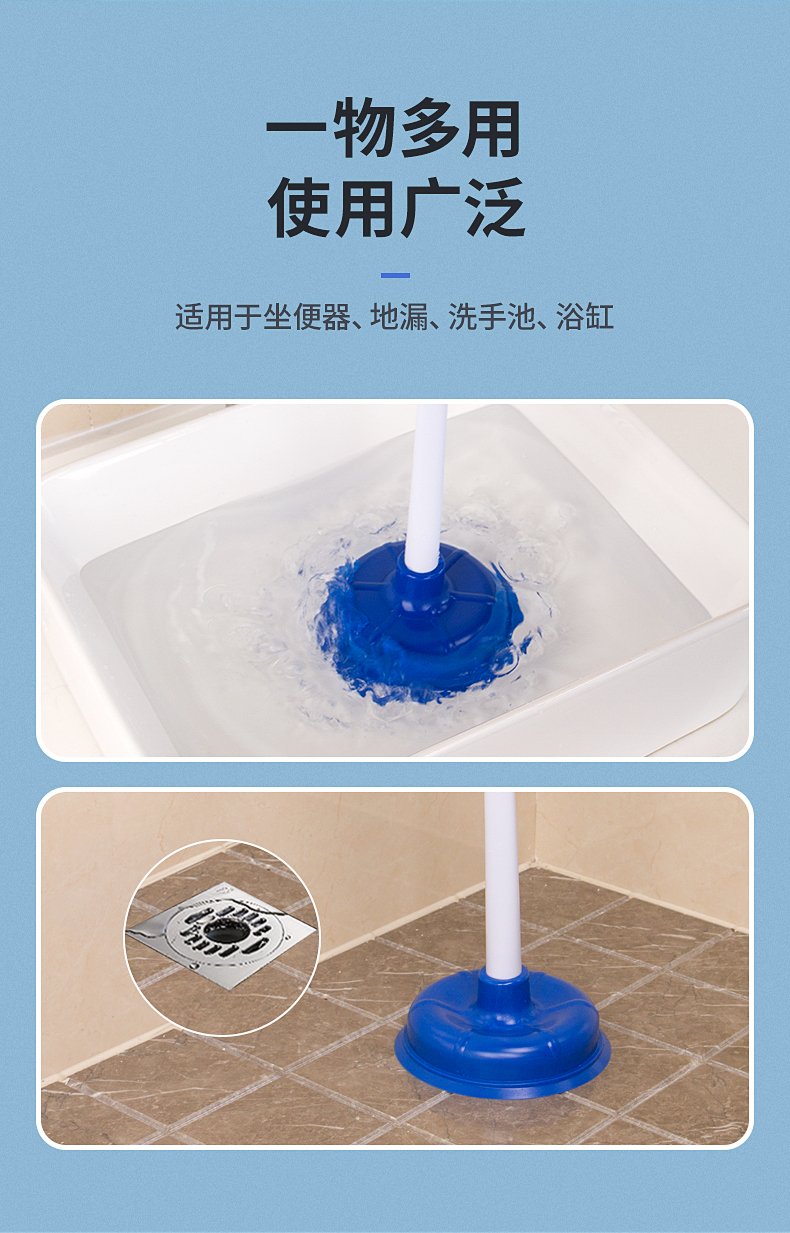 世家 21038马桶疏通器50*15cm加宽吸碗,吸力强劲、按压疏通不翻 皮老虎(单位:个) 蓝色