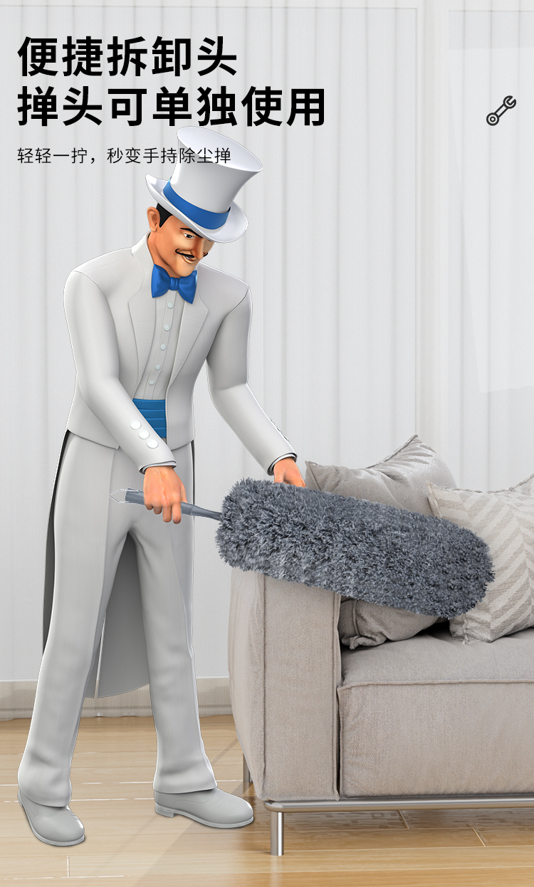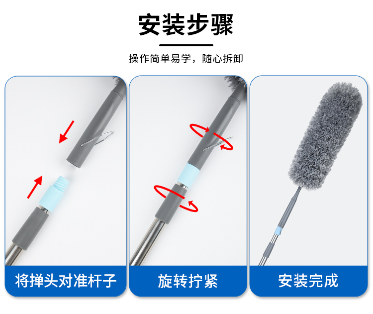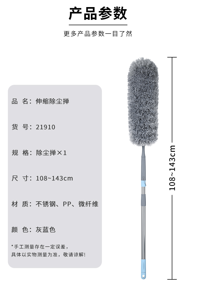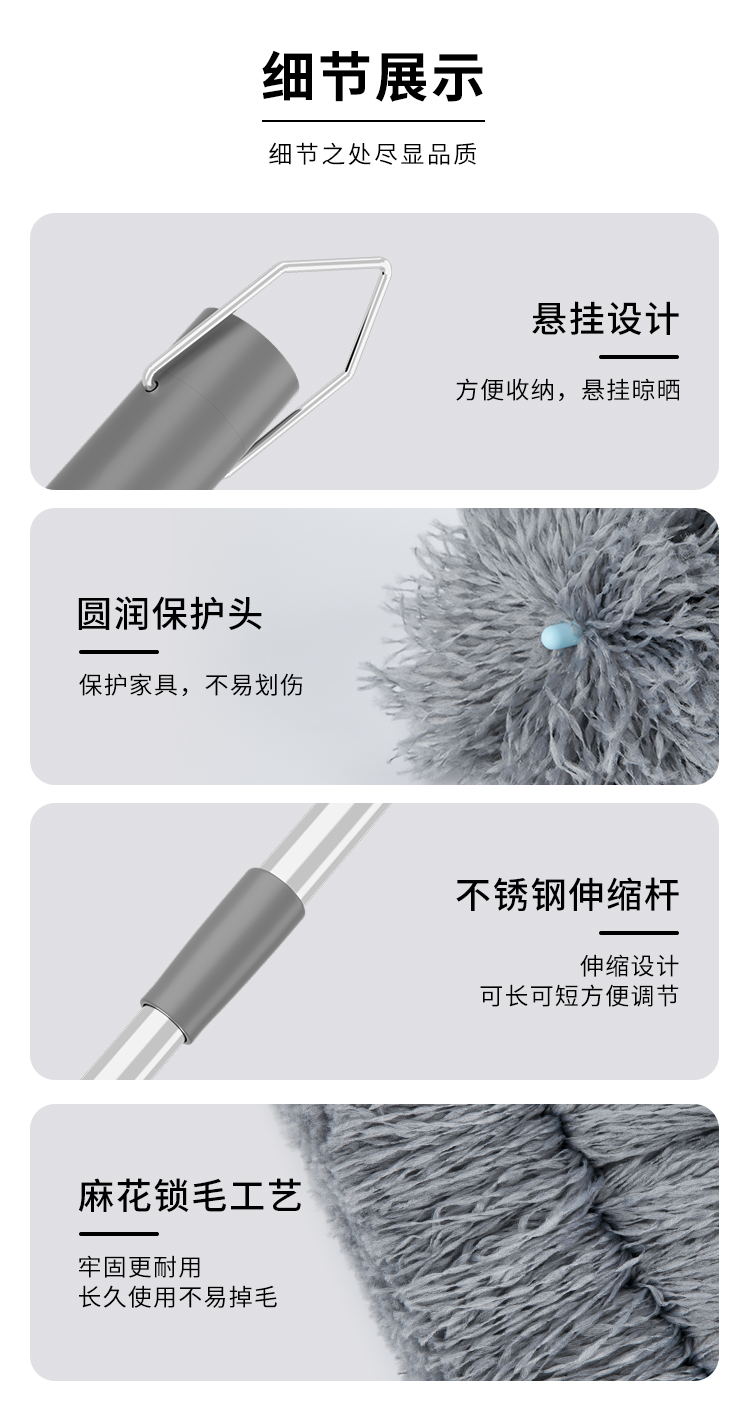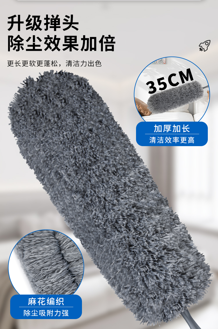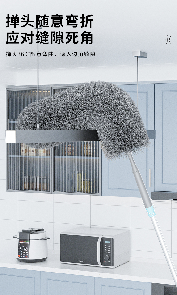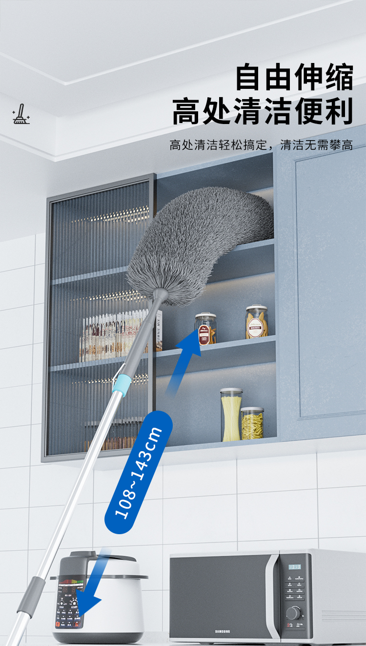 世家 21910除尘掸108-143cm 35cm加厚加长掸头可随意弯曲 伸缩杆除尘掸(单位:个) 浅灰色