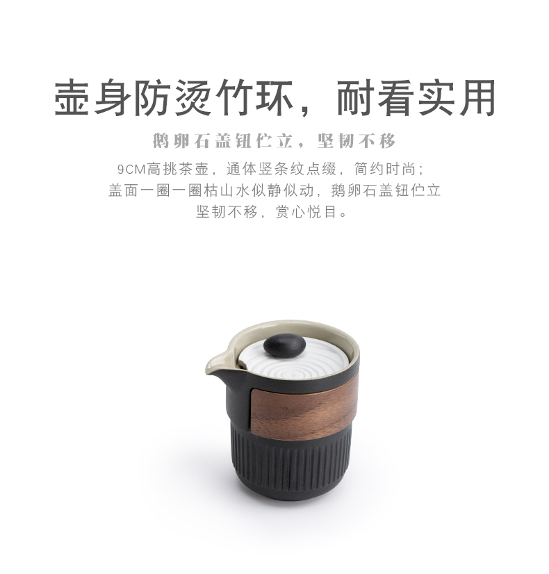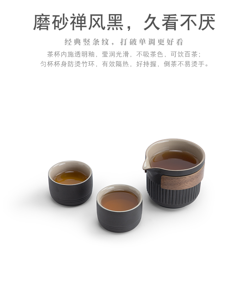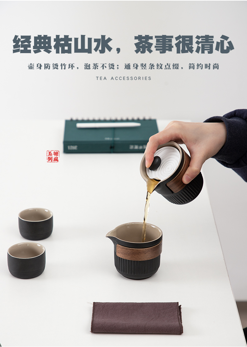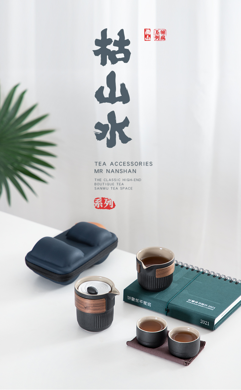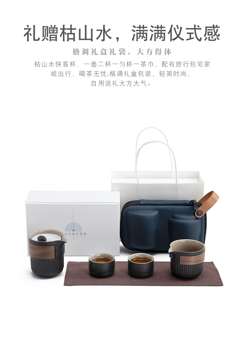 南山先生 茶具日式陶瓷防烫一壶二杯快客杯礼盒装户外枯山水旅行茶具 枯山水旅行茶具(礼盒装) 黑色