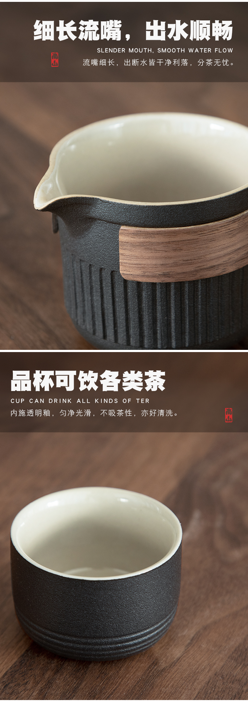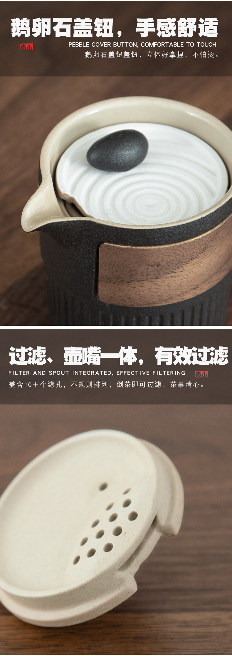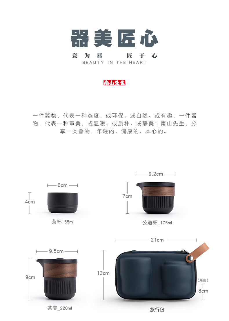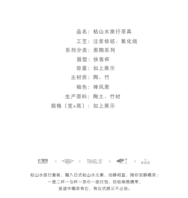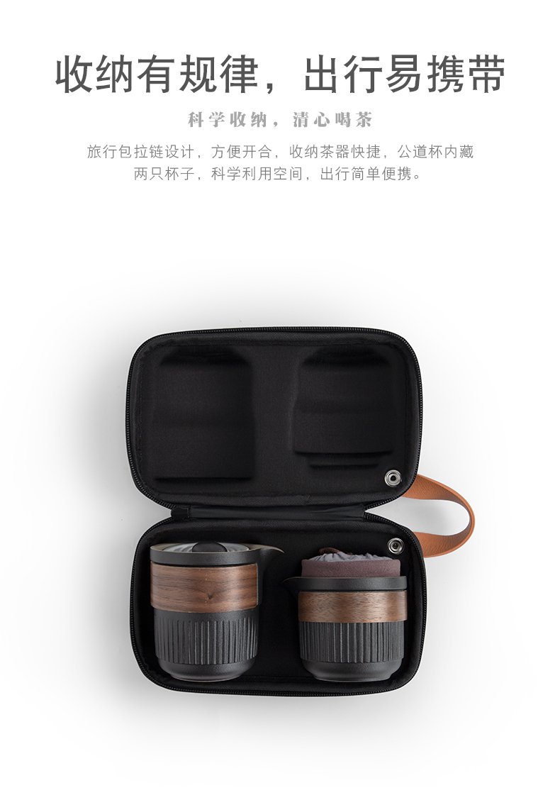 南山先生 茶具日式陶瓷防烫一壶二杯快客杯礼盒装户外枯山水旅行茶具 枯山水旅行茶具(礼盒装) 黑色