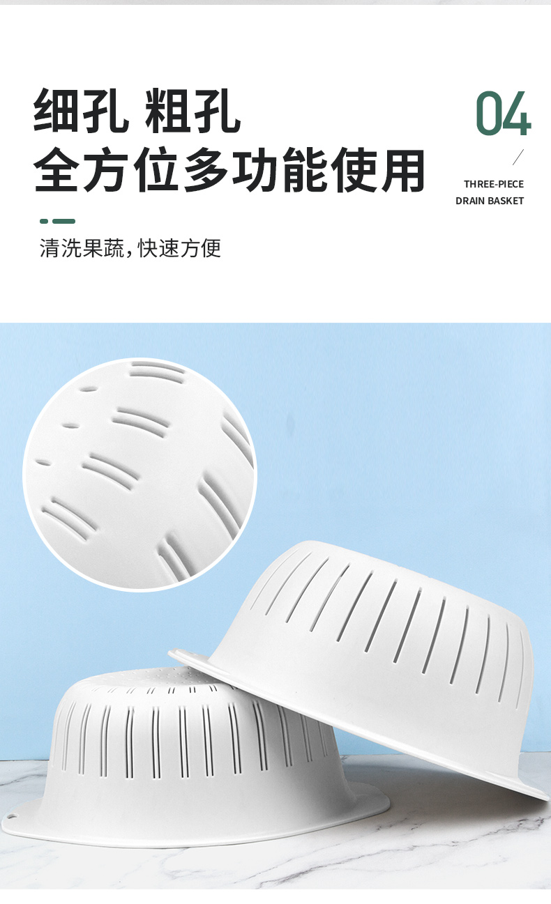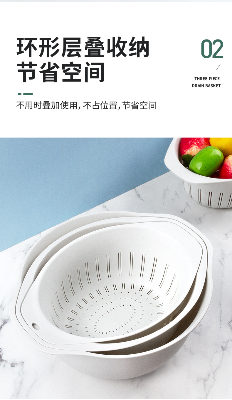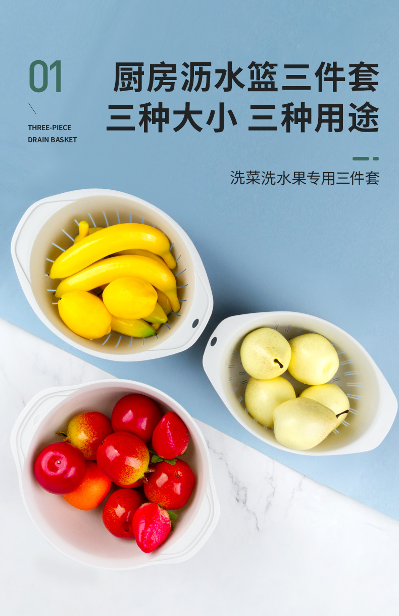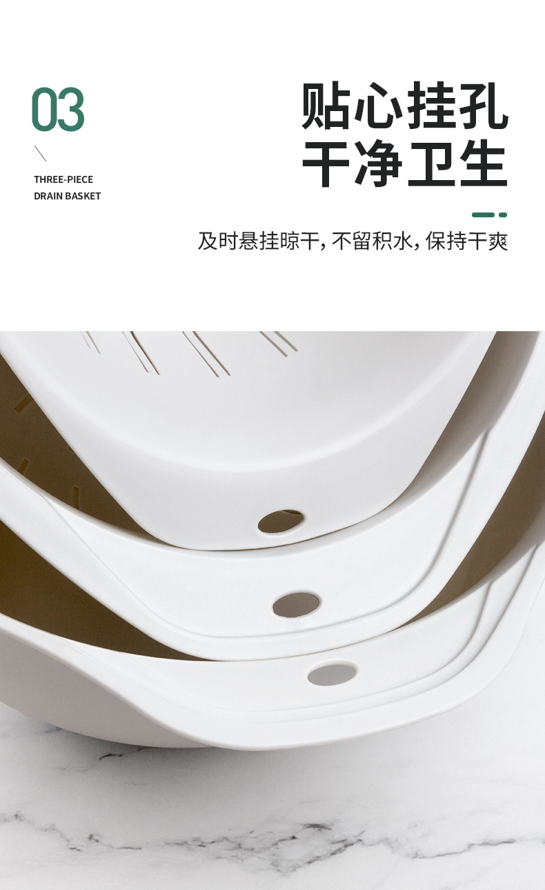 世家 21773沥水篮三件套33*38*13/31*23.5*12/29.5*20*10cm(套) 浅灰色