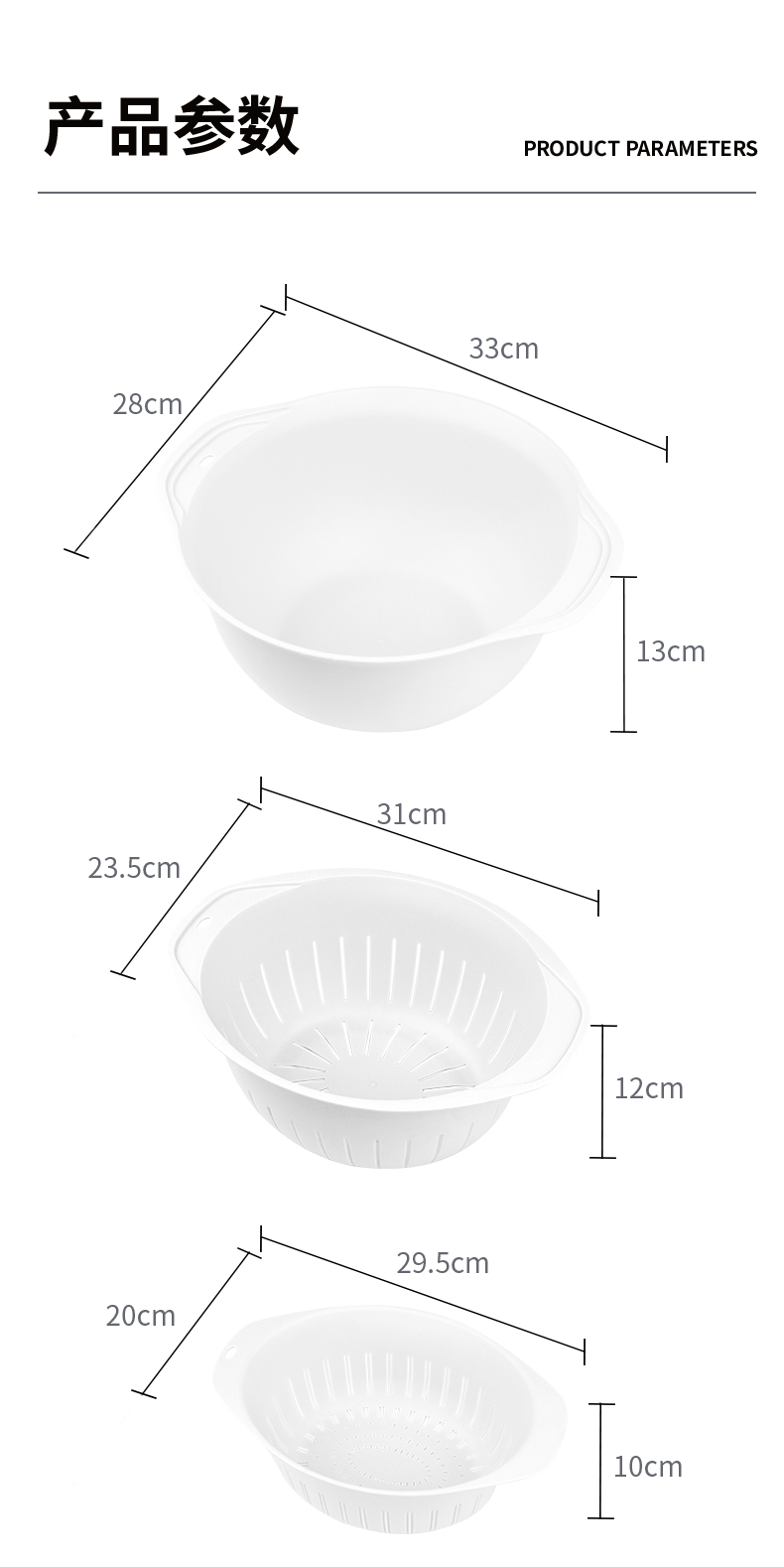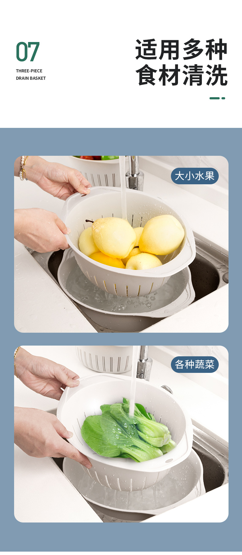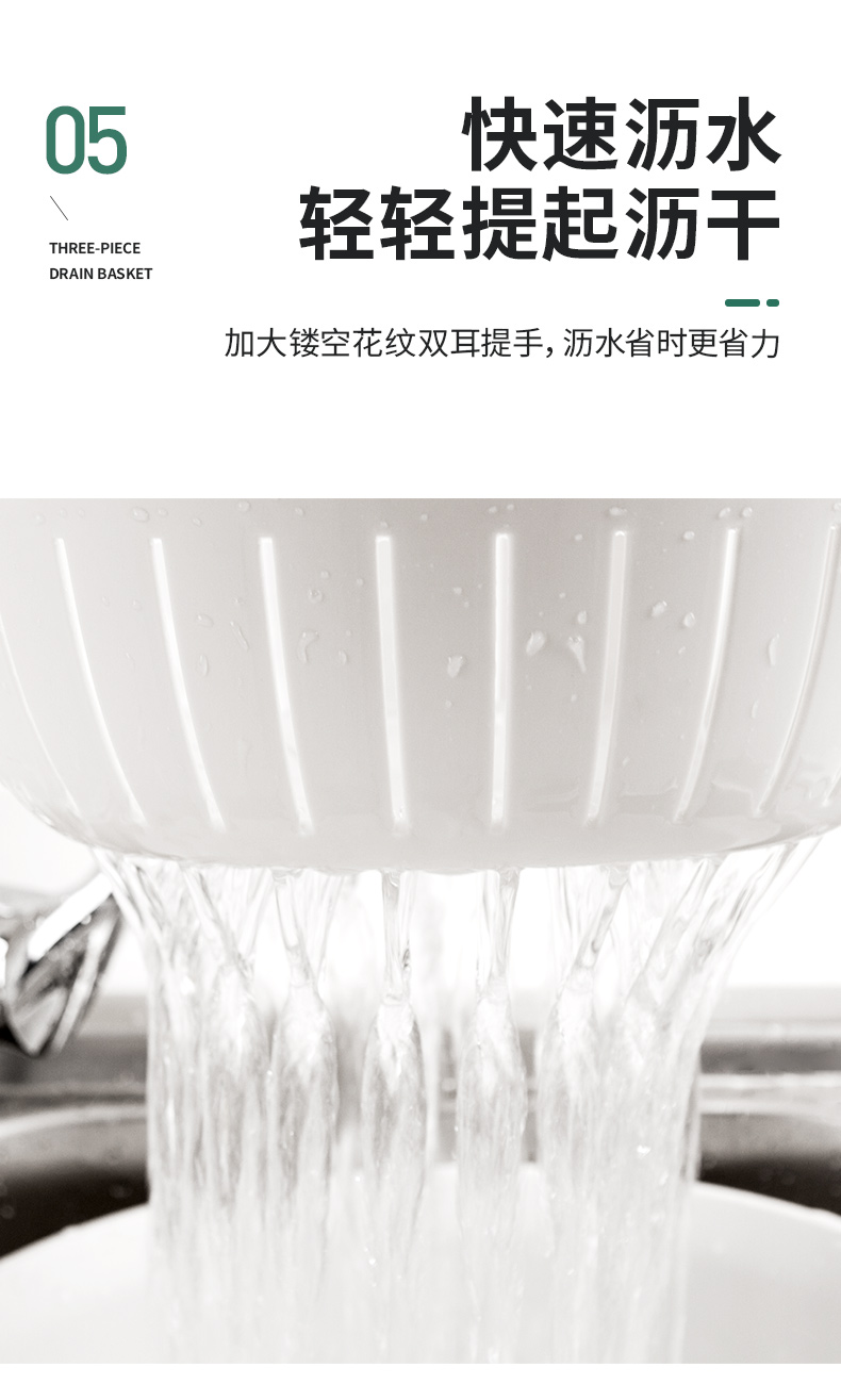 世家 21773沥水篮三件套33*38*13/31*23.5*12/29.5*20*10cm(套) 浅灰色