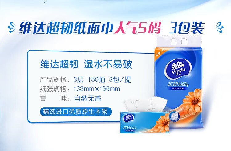 维达超韧抽纸150抽3连包/提 宝石蓝