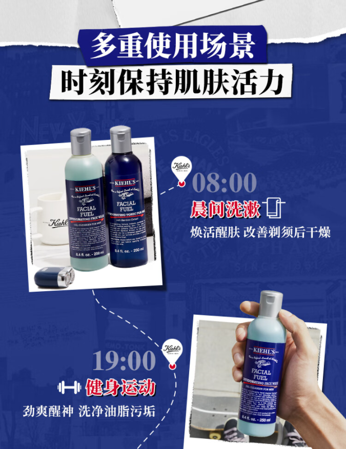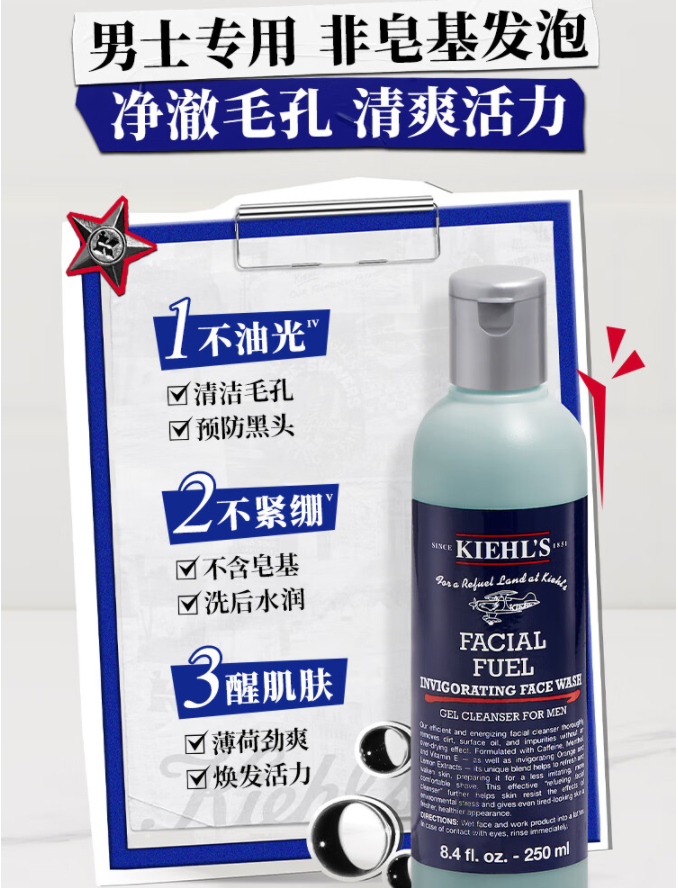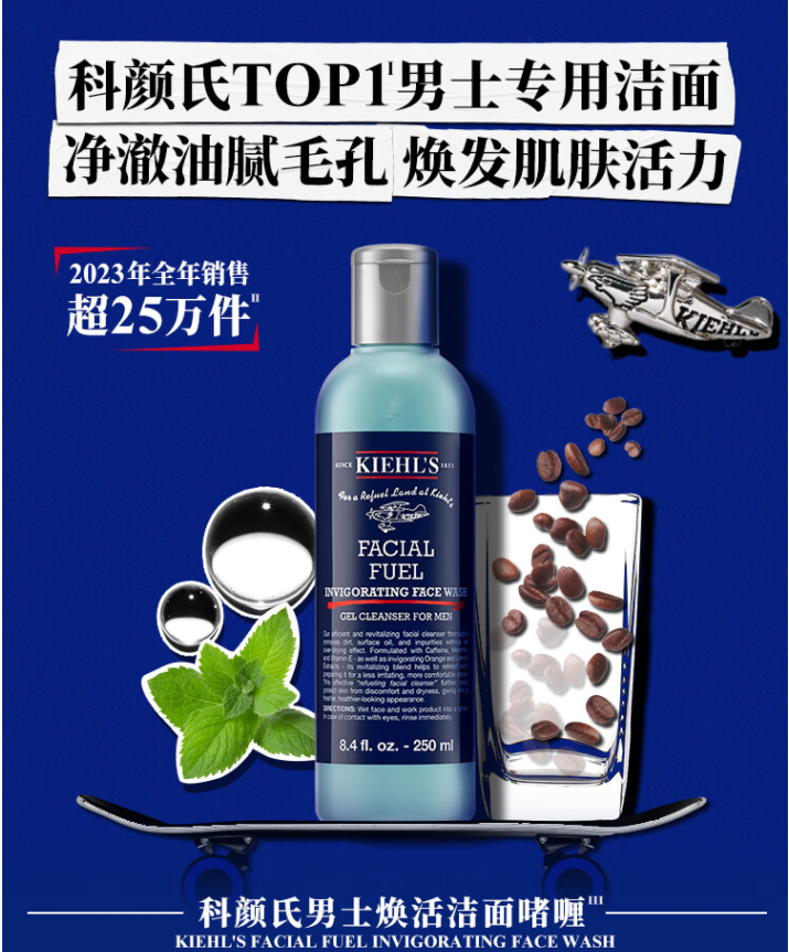 科颜氏(Kiehl's)男士焕活洁面啫喱 250ml(单位:瓶) 极光蓝