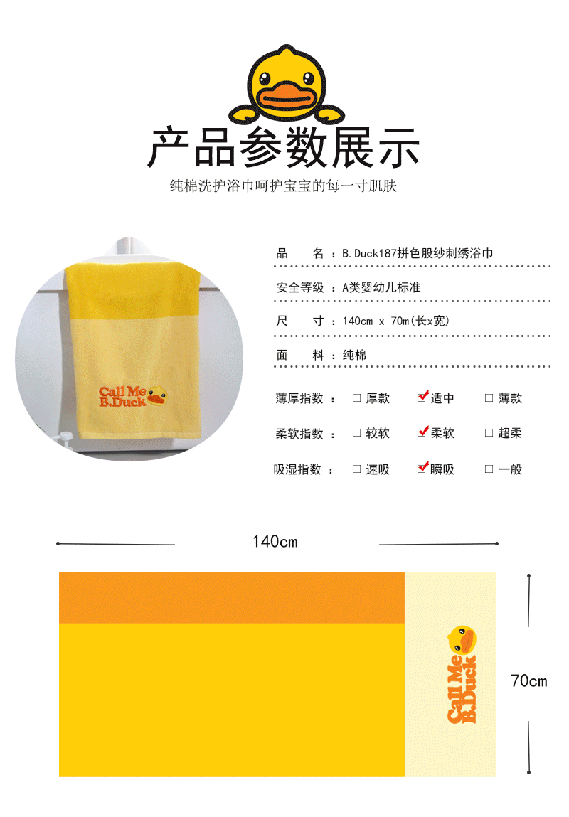 B.DUCK大浴巾一条装187/140*70cm*1(单位:条) 黄色