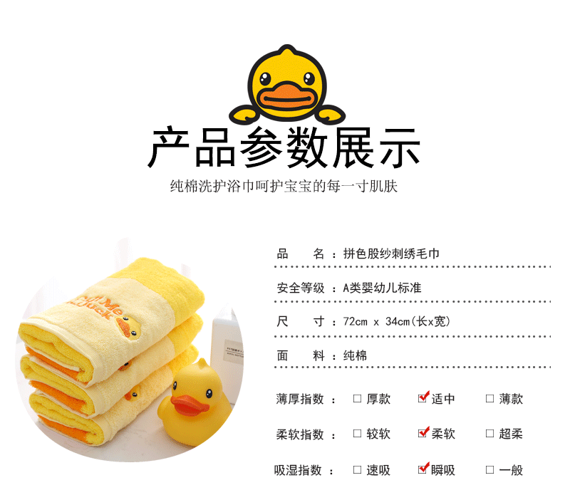 B.DUCK毛巾三条装759/72*34cm*3(单位:份) 黄色