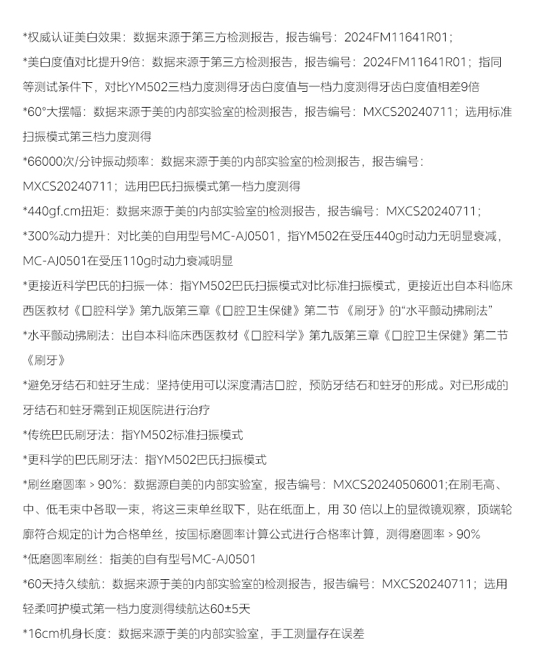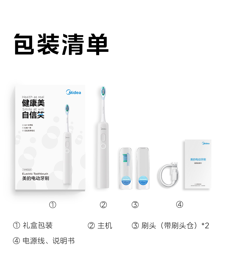美的(Midea) YM502 创新巴士模式 巴氏刷牙模式 白色(单位:台)